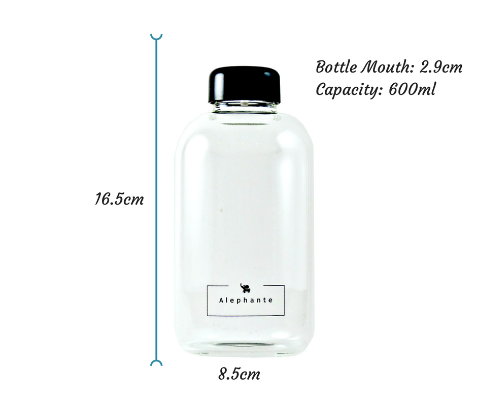 Adorable stubby glass bottle. Pressing your lips up against quality borosilicate glass. The leak-proof cap is made of BPA-Free Plastic. Fill it up with your healthy detox water!